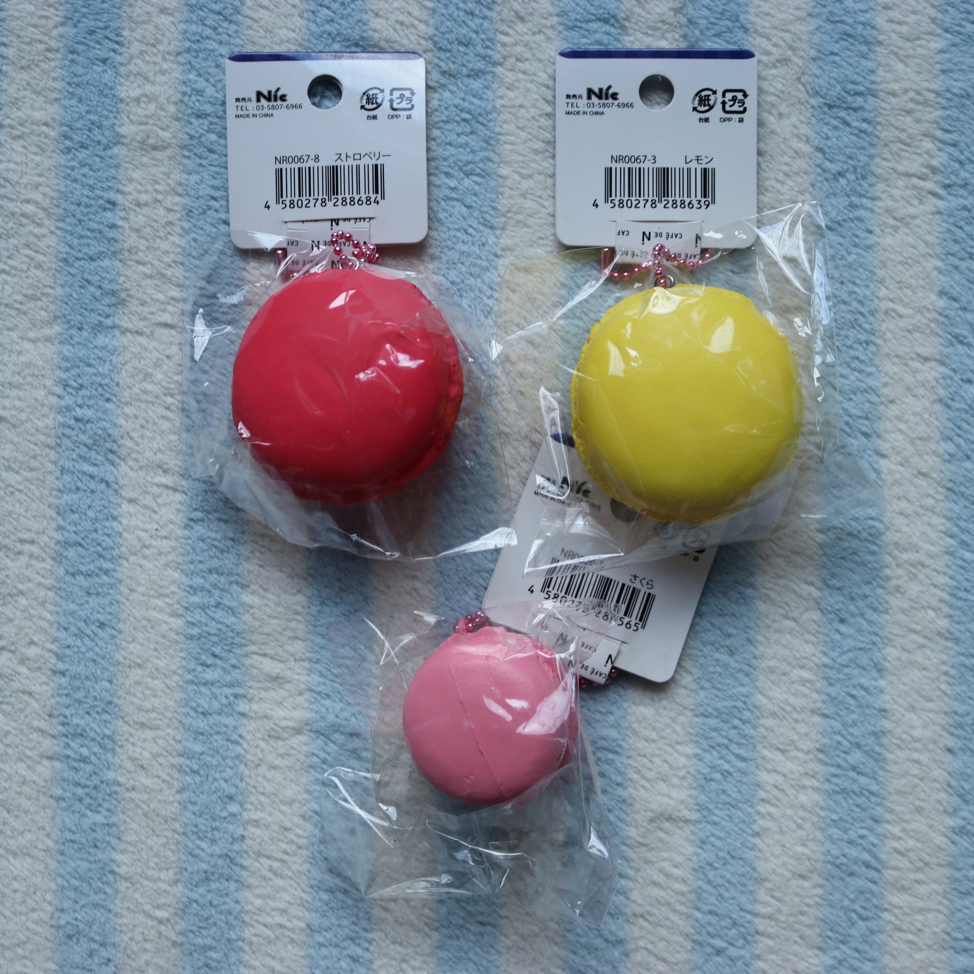 Licensed by NIC, macaron squishy by Cafe de N. Comes in three different flavors!